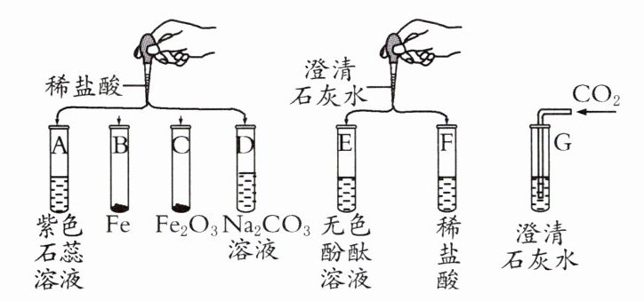 3. 某化学实验小组欲探究盐酸、氢氧化钙的化学性质,取七支试管分别用A~G编号后,做如下实验: