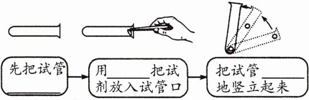 ①块状试剂或金属颗粒(一横、二放、三慢竖)