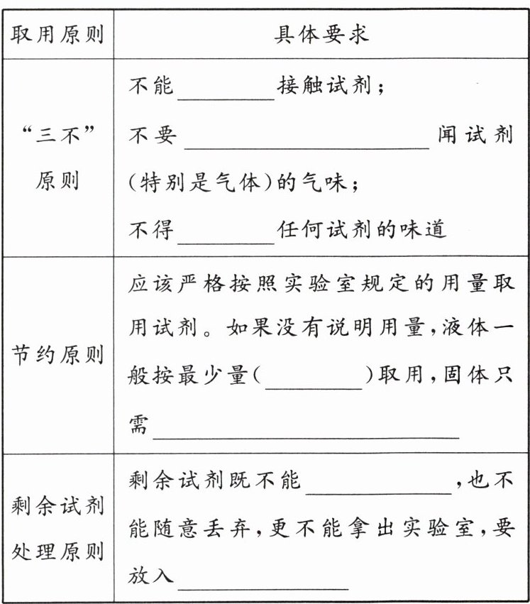 (1)用手 把鼻孔凑到容器口 尝 1~2mL 铺满试管底部即可 放回原瓶 指定的容器内