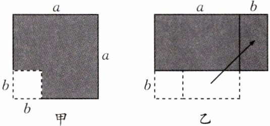 1. 在边长为a的正方形中挖去一个边长为b的小正方形(a>b)(如图甲),把余下的部分拼成一个长方形(如图乙),根据两个图形中阴影部分的面积相等,可以验证( )