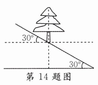 14. 如图,一棵树生长在30°的山坡上,树干与山坡所成的角是________。