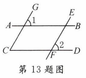 13. 教材P47习题T1变式 如图,∠1 = ∠2,∠2 = ∠C,则图中互相平行的直线有____________________。