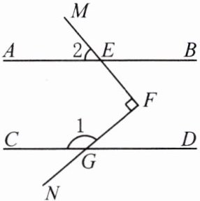 17. 小明到工厂参加社会实践活动时,发现工人师傅测量一块木板两边AB与CD是否平行时,将直角尺(∠MFN = 90°)如图放置,MF交AB于点E,NF交CD于点G,测得∠1 = 140°,∠2 = 50°。小明马上用所学数学知识帮师傅进行了说明。请你写出规范的说明过程。