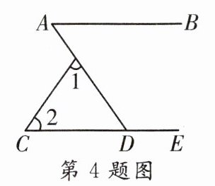 4. 如图,已知∠BAD = 55°,∠1 = 70°,若∠BAD + ∠ADE = 180°,则∠2 =( )