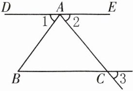 2. 如图,已知直线DE经过点A,∠1 = ∠B,∠2 = 50°,则∠3的度数为( )
