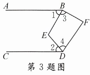 3. 如图所示,AB//CD,若∠3 = $\frac{3}{2}$∠1,∠4 = $\frac{3}{2}$∠2,下列各式:①∠1 + ∠2 = ∠E;②∠1 + ∠2 + ∠3 + ∠4 = ∠F;③∠3 + ∠4 + ∠F = 360°;④5∠E + 2∠F = 720°,其中正确的是( )