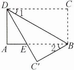 7. 如图,将长方形纸片$ABCD$沿$BD$折叠,得到三角形$BC'D$,$C'D$与$AB$交于点$E$。若$\angle 1 = 35^{\circ}$,则$\angle 2$的度数为( )