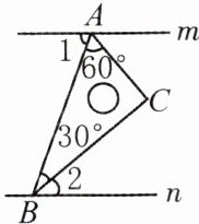 4. (襄阳中考)已知直线$m// n$,将一块含$30^{\circ}$角的直角三角板$ABC$($\angle ABC = 30^{\circ}$,$\angle BAC = 60^{\circ}$)按如图方式放置,点$A$,$B$分别落在直线$m$,$n$上。若$\angle 1 = 70^{\circ}$,则$\angle 2$的度数为( )