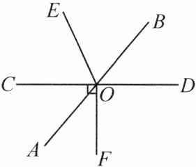 8. 如图,直线AB,CD相交于点O,OE平分∠BOC,∠COF = 90°。