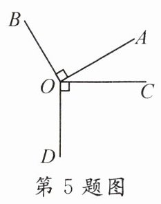 5. 如图,AO⊥BO,CO⊥DO,∠AOC:∠BOC = 1:4,则∠BOD =( )