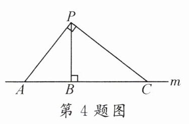 4. 如图所示,P为直线m外一点,点A,B,C在直线m上,且PB⊥m,垂足为B,∠APC = 90°,则下列说法错误的是( )