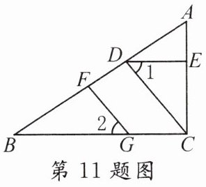 11. 如图,若∠1 = ∠2,DE//BC,则有下列结论: