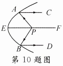 10. 生活中常见的探照灯、汽车大灯等灯具都与抛物线有关。如图,从光源P点照射到抛物线上的光线PA,PB