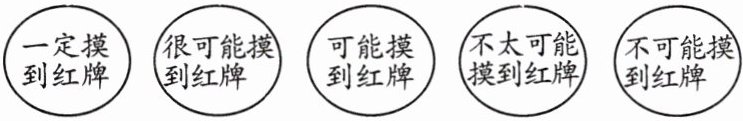 10. 下面第一排表示10张扑克牌的不同情况,任意摸1张,请你将摸到红色扑克牌的可能性与对应的方框用线连起来。