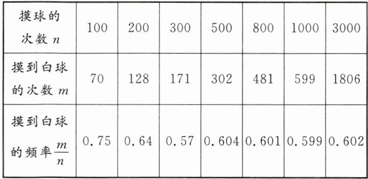 B. 从该盒子中任意摸出一个小球,摸到白球的频率稳定在0.6左右