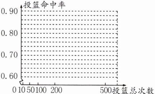 (3)观察折线统计图可知投篮命中率的变化规律:随着投篮总次数的增多,投篮命中率逐渐趋于0.80。