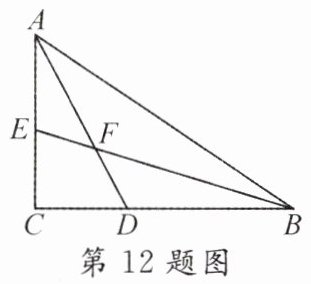 12. 如图,小明在计算机上用“几何画板”画了一个Rt△ABC,∠C = 90°,并画出了两锐角的平分线AD,BE及其交点F。小明发现,无论怎样改变Rt△ABC的形状和大小,∠AFB的度数都是定值,则这个定值为 ( )