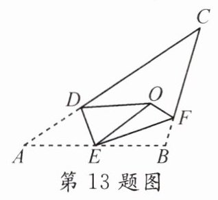 13. 如图,将△ABC沿DE,EF翻折,顶点A,B均落在点O处,且EA与EB重合于线段EO,若∠DOF = 142°,则∠C的度数为 ( )