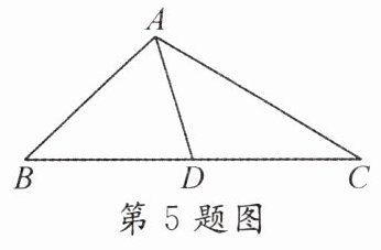 5. 如图,在△ABC中,点D是BC的中点,AB = 9,AC = 12,△ACD的周长是22,则△ABD的周长是______。