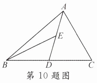 10. 如图,AD为△ABC的中线,BE为△ABD的中线。若△ABC的面积为30,BD = 5,则△BDE中BD边上的高是( )