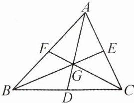 12. (荆门中考)如图,点G为△ABC的重心,D,E,F分别为BC,CA,AB的中点,且AG:GD = BG:GE = CG:GF = 2:1。已知△AFG的面积为3,则△ABC的面积为_______。