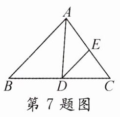 7. 如图,在△ABC中,AD平分∠BAC交边BC于点D,DE//AB交AC于点E。若∠B = 46°,∠C = 54°,则∠ADE的大小为 ( )