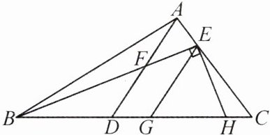 9. 如图,在△ABC中,点D在BC上,点E在AC上,AD交BE于点F。已知EG//AD交BC于点G,EH⊥BE交BC于点H,∠HEG = 55°。