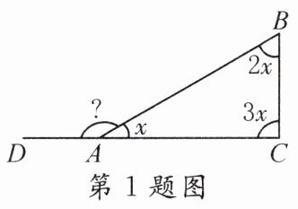 1. 如图,在△ABC中,∠BAC = x,∠B = 2x,∠C = 3x,则∠BAD = ( )