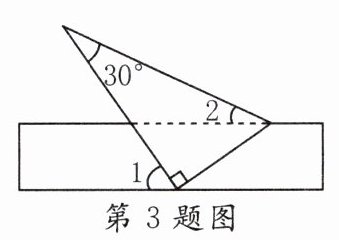 3. 如图,将一块含有30°角的直角三角尺的两个顶点放在长方形直尺的一组对边上。若∠1 = 55°,则图中∠2的大小为 ( )