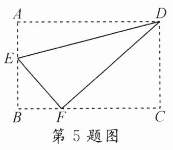 5. 如图,鹏鹏将长方形纸片ABCD剪成三角形纸片DEF,若∠DEF + ∠EDF = 90°,则∠EFB + ∠DFC的度数为______。