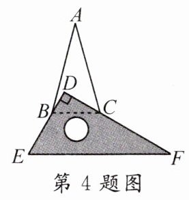 4. 如图,将一块直角三角尺DEF放置在锐角三角形ABC上,使得该三角尺的两条直角边DE,DF恰好分别经过点B,C,若∠A = 40°,则∠ABD + ∠ACD = ( )