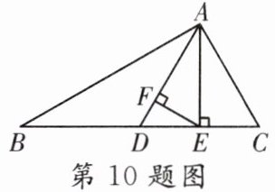 10. 如图,在$\triangle ABC$中,$\angle B = 30^{\circ}$,$\angle C = 60^{\circ}$,$AE\perp BC$于点$E$,$AD$平分$\angle BAE$,$EF\perp AD$于点$F$,以下结论:①$\angle DEF = 30^{\circ}$;②$AD = AC$;③$\triangle AFE\cong\triangle AEC$;④$DE = CE$。其中正确的结论有( )