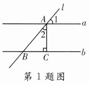 1. 如图,直线$a// b$,直线$l$与$a$,$b$分别交于点$A$,$B$,过点$A$作$AC\perp b$于点$C$。若$\angle 1 = 50^{\circ}$,则$\angle 2$的度数为( )