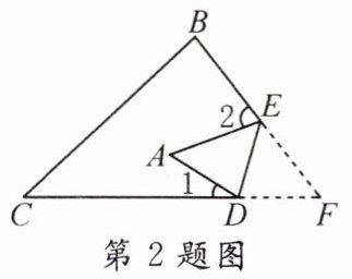 2. 如图,把三角形纸片$ABC$沿$DE$折叠,使点$A$落在四边形$BCDE$的内部,则$\angle A$与$\angle 1$,$\angle 2$的关系为( )