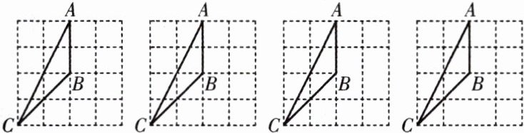 9. 在4×4的方格纸中,△ABC的三个顶点都在格点上。在图中画出与△ABC成轴对称的格点三角形(画出4个即可)。