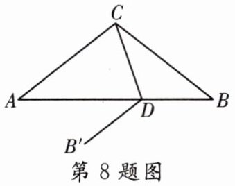 8. 如图,在△ABC中,∠A = ∠B = 38°,点D是边AB上一点,点B关于直线CD的对称点为B',当B'D//AC时,∠BCD的度数为______。