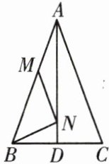 15. 如图,在△ABC中,∠ABC = 70°,AB = AC = 8,D为BC中点,点N在线段AD上,NM//AC交AB于点M,BN = 3。