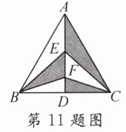 11. 如图,在△ABC中,AB = AC,AD⊥BC,垂足为D。若S△ABC = 12,则图中阴影部分的面积为__________。