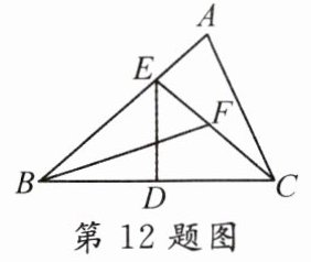12. 如图,在$\triangle ABC$中,$DE$垂直平分$BC$,分别交$BC$,$AB$于点$D$,$E$,连接$CE$,$BF$平分$\angle ABC$,交$CE$于点$F$,若$BE = AC$,$\angle ACE = 12^{\circ}$,则$\angle EFB$的度数为( )