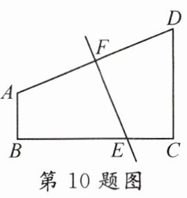 10. 如图,在四边形$ABCD$中,$\angle B = \angle C = 90^{\circ}$,边$AD$的垂直平分线分别交$BC$,$AD$于点$E$,$F$,且$AF = EF$。若$AB = 5$,$CD = 12$,则$BE$的长为( )