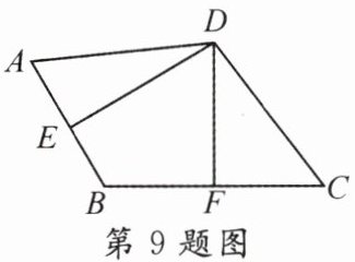 9. 如图,在四边形$ABCD$中,$DE$和$DF$恰好分别垂直平分$AB$和$BC$,则以下结论不正确的是( )