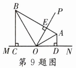 9. 如图,点A,B分别是∠NOP,∠MOP平分线上的点,AB⊥OP于点E,BC⊥MN于点C,AD⊥MN于点D,下列结论错误的是( )