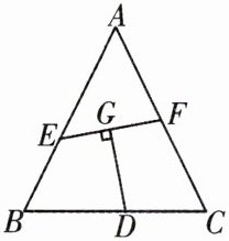 12. 如图,在$\triangle ABC$中,$AB = AC$,$E$,$D$,$F$分别在$AB$,$BC$,$AC$边上,且$BE = CD$,$BD = CF$,过$D$作$DG\perp EF$于$G$. 求证:$EG=\frac{1}{2}EF$.