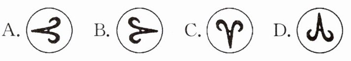 1. 将图中所示的图案以圆心为中心,旋转180°后得到的图案是 ( )