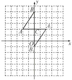 3. 如图,方格纸中每个小正方形的边长都是1个单位长度,Rt△ABC三个顶点的坐标分别为A(-2,2),B(0,5),C(0,2). 将△ABC以点C为旋转中心旋转180°,得到△A₁B₁C,请画出△A₁B₁C.
