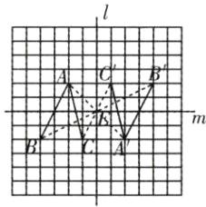 7. 如图,直线m与直线l交于点E,作出与△ABC关于点E成中心对称的图形△A'B'C'.