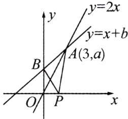 10. 如图,在平面直角坐标系中,点A(3,a)是直线y = 2x与直线y = x + b的交点,点B是直线y = x + b与y轴的交点,点P是x轴上的一个动点,连结PA、PB,则PA + PB的最小值是 ( )
