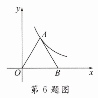 6. (牡丹江中考)如图,等边三角形 OAB,点 B 在 x 轴正半轴上,$S_{\triangle OAB}=4\sqrt{3}$,若反比例函数 y = $\frac{k}{x}$(k ≠ 0)图象的一支经过点 A,则 k 的值是( )