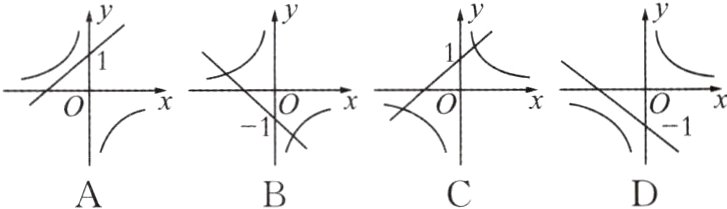 2. (滨州中考)在同一平面直角坐标系中,函数 y = kx + 1 与 y = -$\frac{k}{x}$(k 为常数且 k ≠ 0)的图象大致是( )
