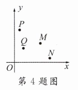 4. (贵阳中考)如图,在平面直角坐标系中有 P、Q、M、N 四个点,其中恰有三点在反比例函数 y = $\frac{k}{x}$(k>0)的图象上。根据图中四点的位置,判断这四个点中不在函数 y = $\frac{k}{x}$的图象上的点是( )